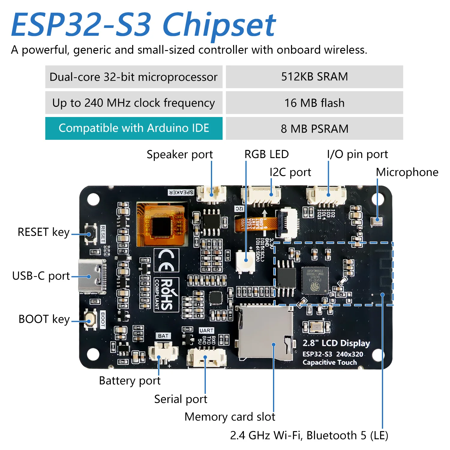 This is a screen with onboard dual-core 32-bit 240 MHz ESP32-S3 microcontroller.